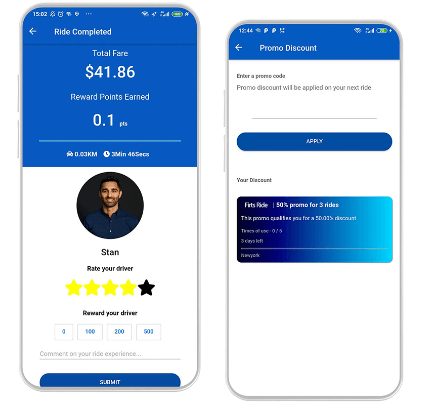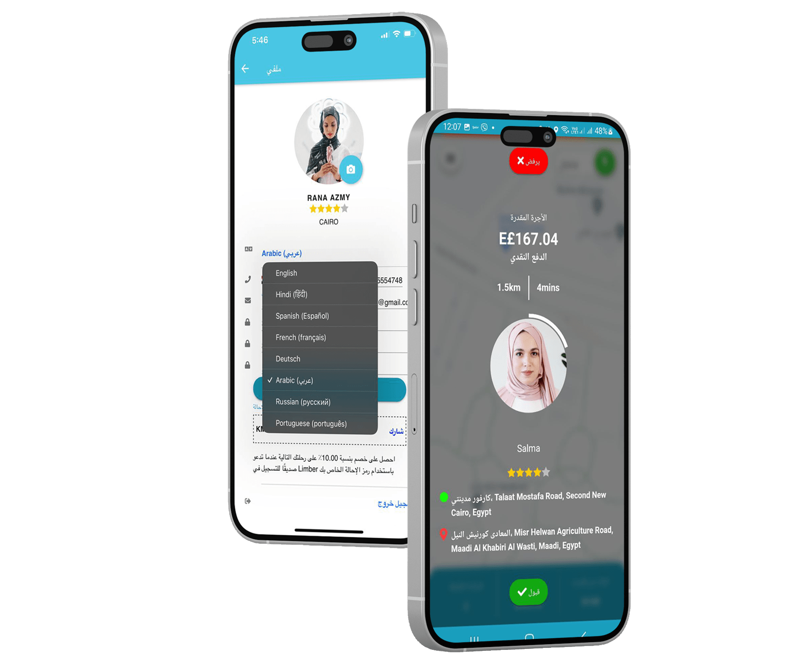 VEMO supports multiple languages and all currencies in the world. Easily switch languages on the rider and driver apps. VEMO default languages include English, Hindi, Spanish, French, Deutsch, Arabic, Russian and Portuguese. Any language can easily be added by following simple steps explained in the Documentation.